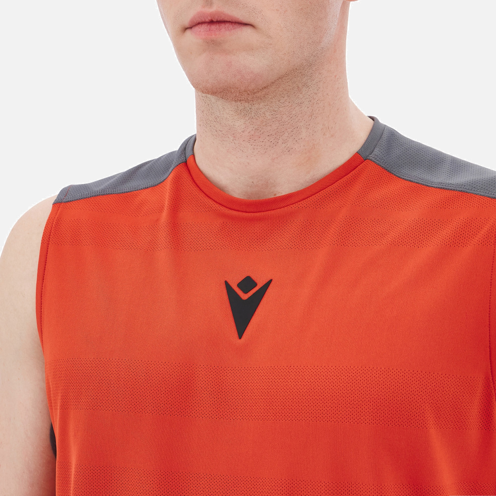 The men’s sleeveless Yanis shirt is made of elastic and lightweight Soft Jacquard fabric. It offers a soft texture and a meticulously curated design: flat seams ensure solid construction, while the sweatband tape in the collar is designed for the most intense moments of physical activity. Its slim fit adapts perfectly to the torso, and the Light Mesh back improves breathability in the shoulder area, keeping the body fresh even during maximum effort.